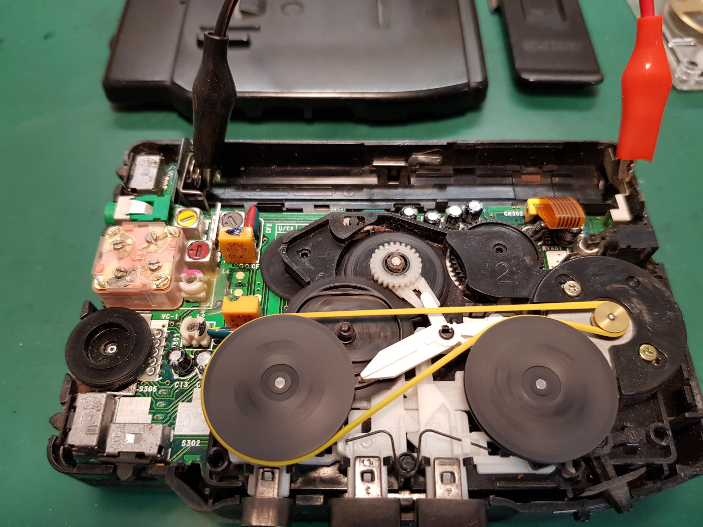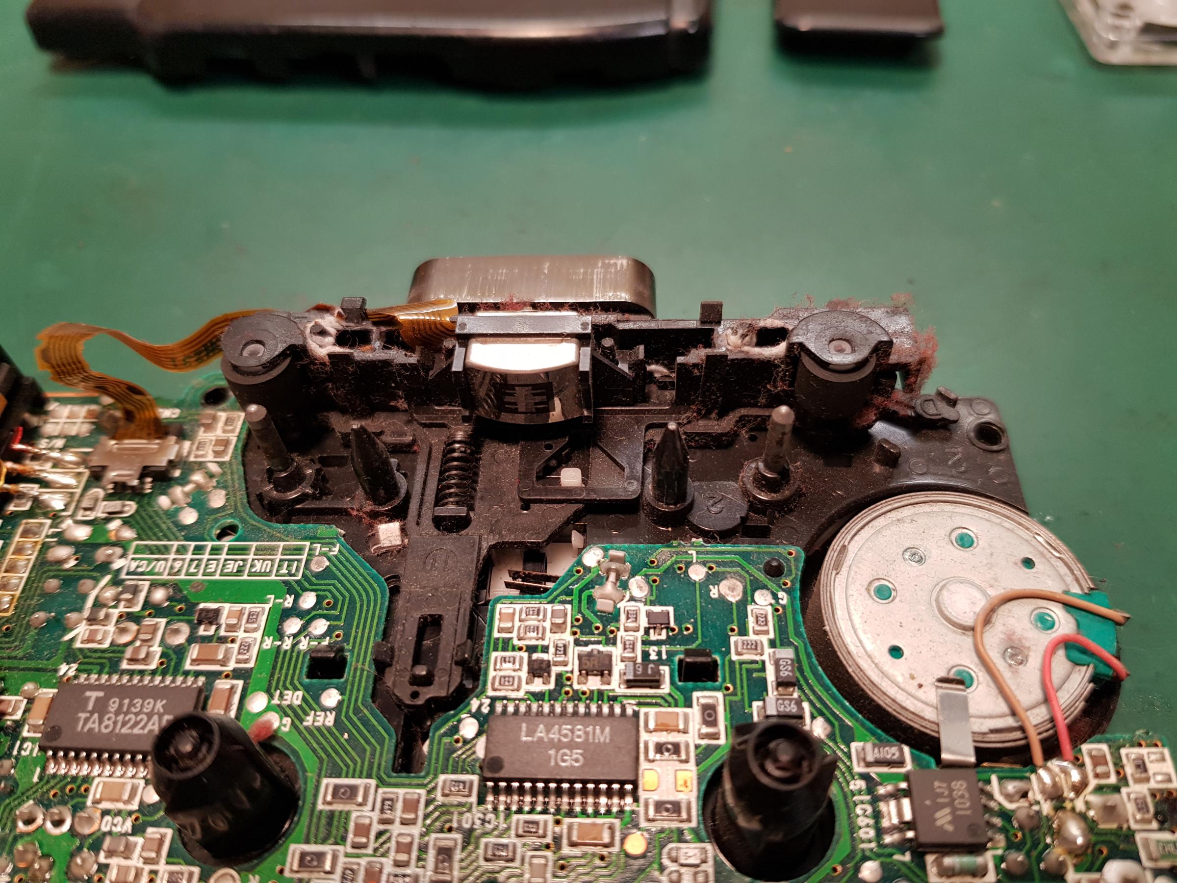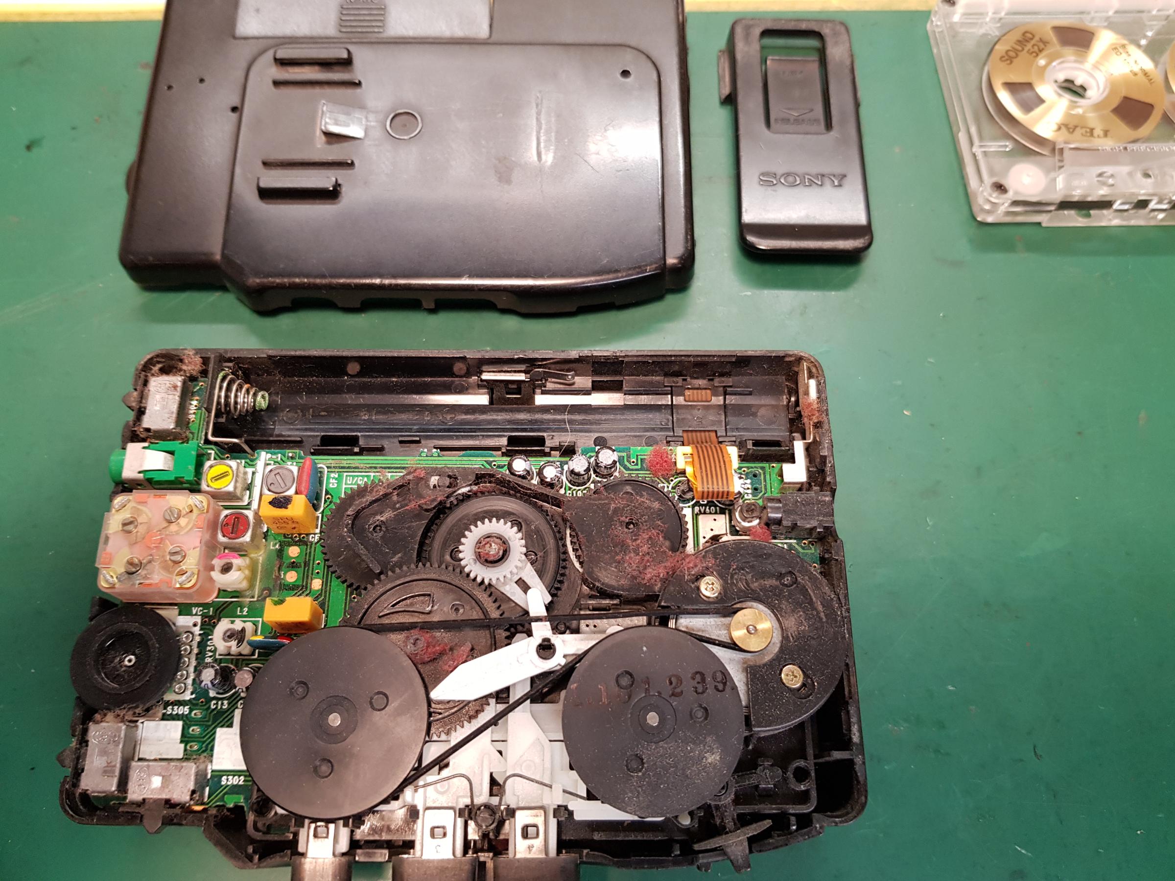 De snaar op mijn Walkman is oud en verslapt daardoor wil hij de tapes niet meer laten draaien. Tijd voor een vervangende snaar. Het kan ook geen kwaad om hem uit te mesten...wat een pluis zit er in... |